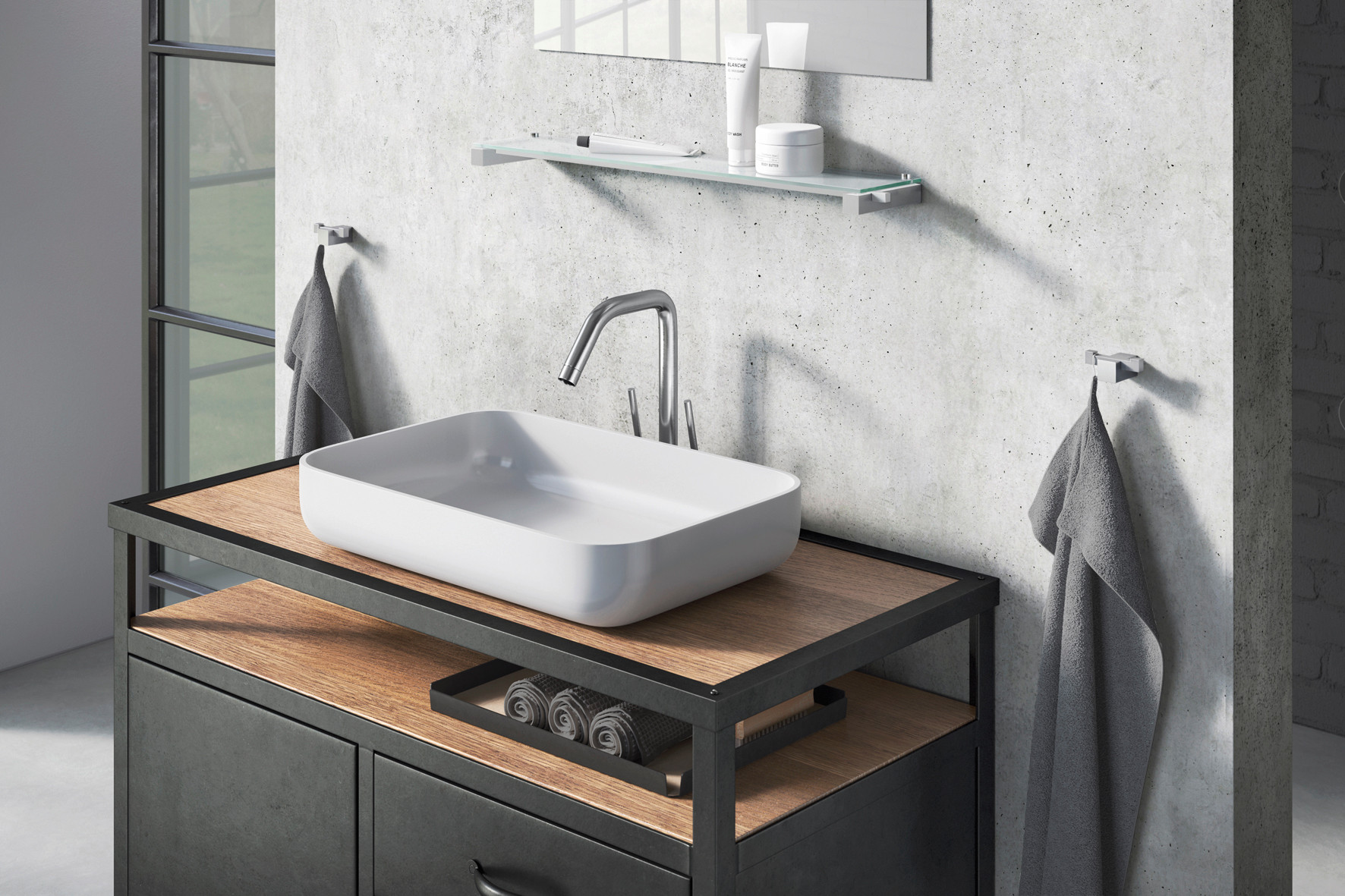 Double hook / support for light towel, signed Zack, in brushed stainless steel 18/10 high-end. Zack has developed the new CARVO range with one objective: modern, elegant and frank forms for a modern design.
