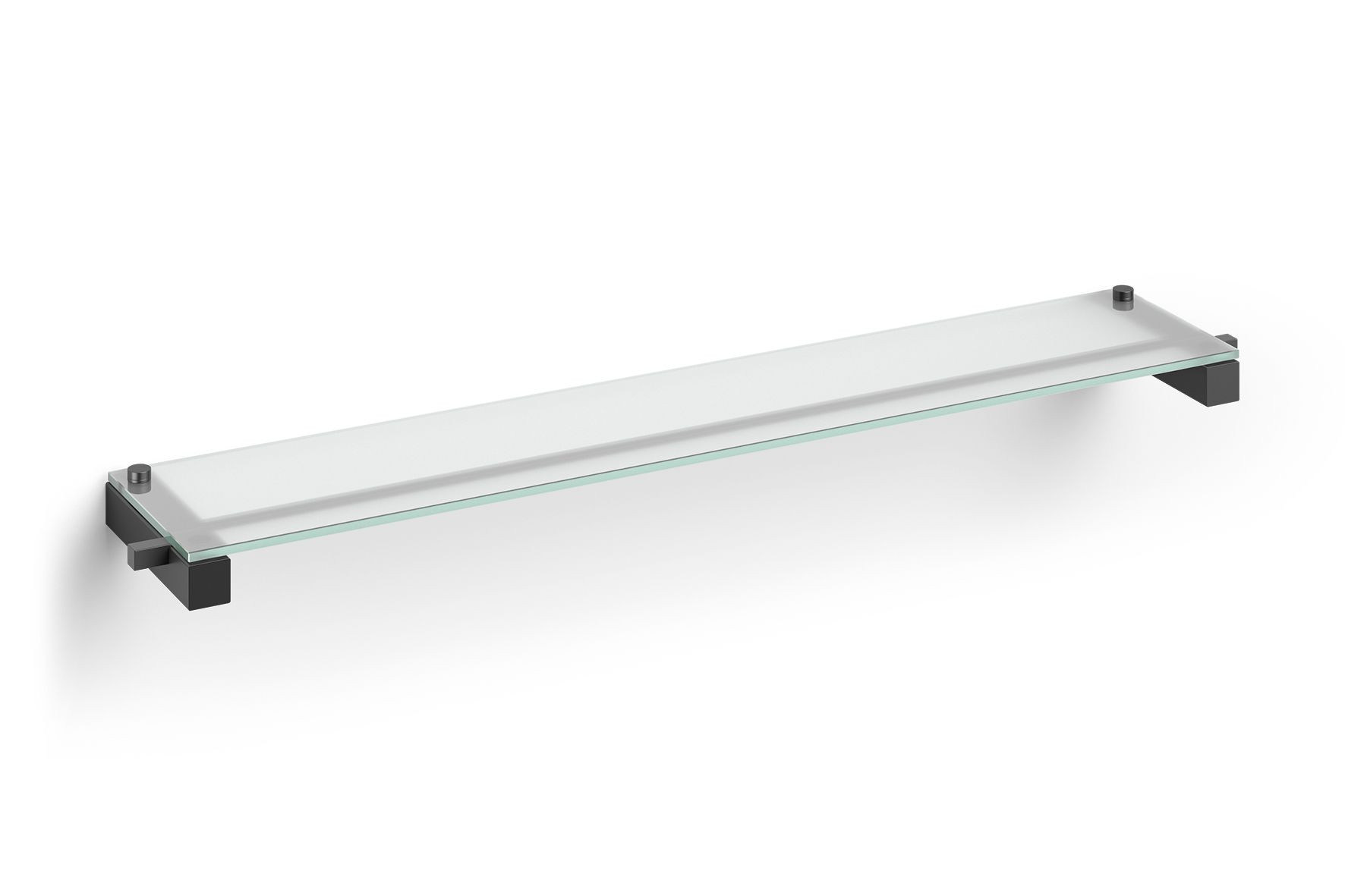 Bathroom shelf in high-end 18/10 black powder-coated stainless steel, signed Zack. A square and elegant design. Frank shapes to present your tubes, creams or other, on a shelf in matt tempered glass. Most beautiful effect, again by Zack.