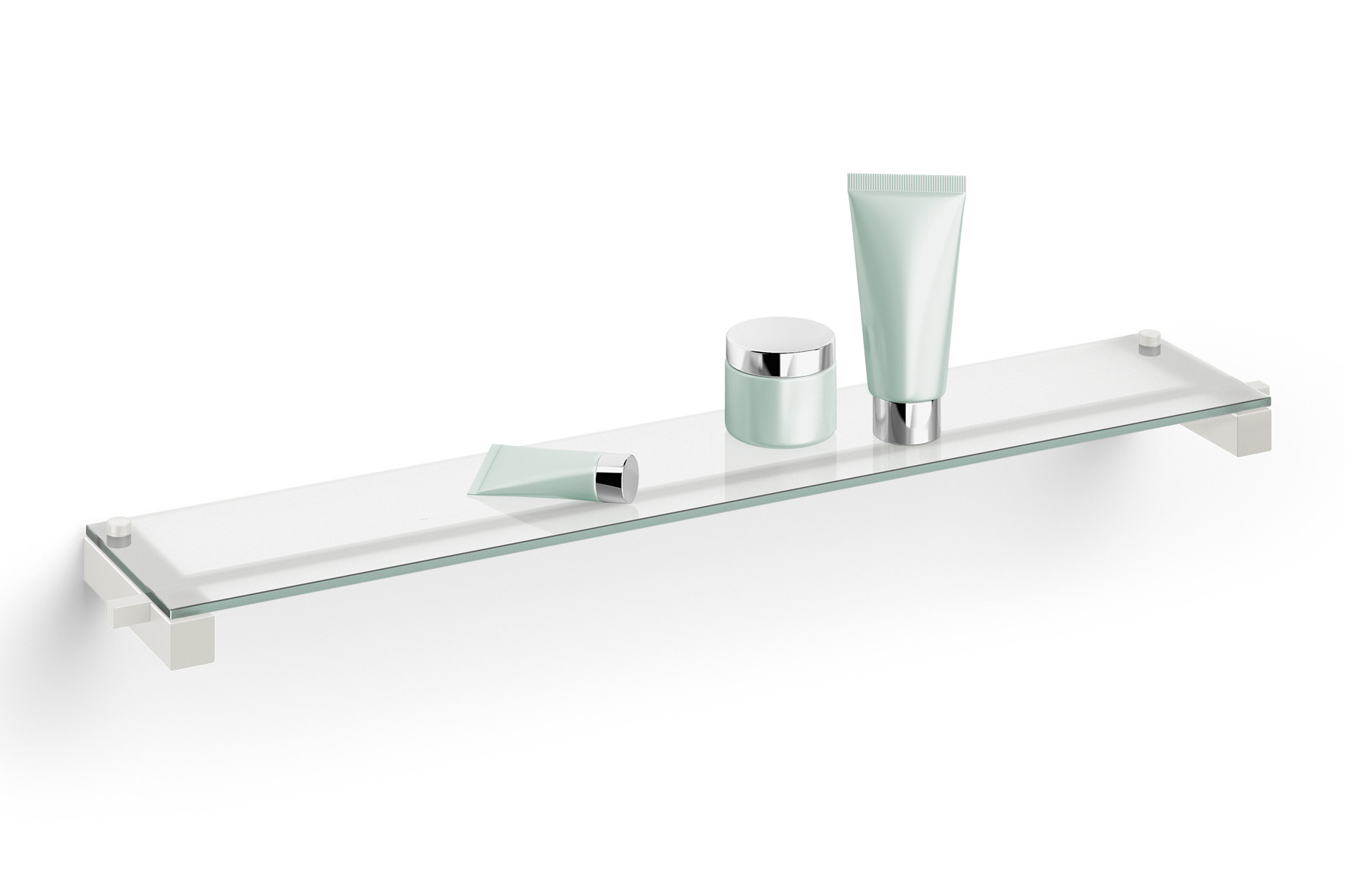 Bathroom shelf in high-end 18/10 black powder-coated stainless steel, signed Zack. A square and elegant design. Frank shapes to present your tubes, creams or other, on a shelf in matt tempered glass. Most beautiful effect, again by Zack.