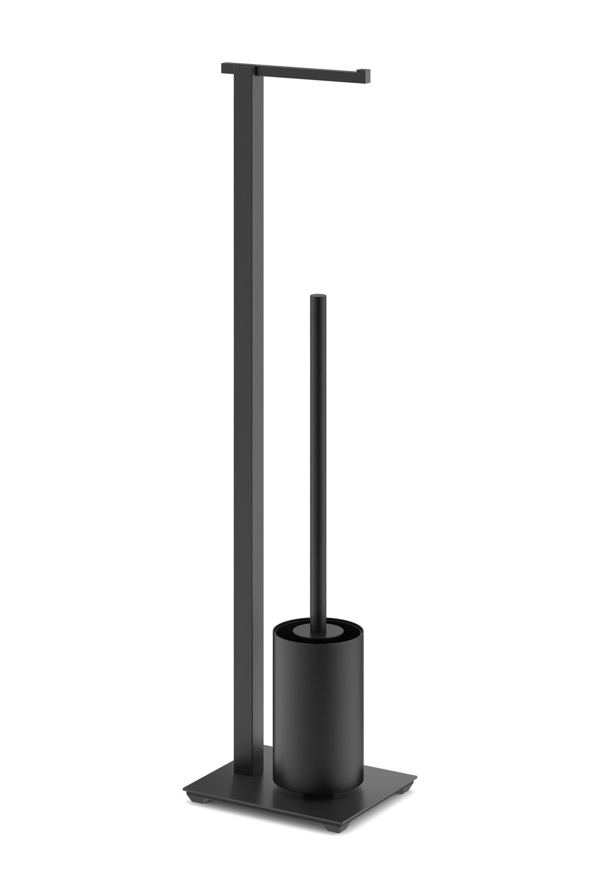 Toilet support to be placed on the floor, including the paper dispenser and the hygienic brush. Article signed Zack in high-end 18/10 black powder-coated stainless steel. Zack has developed the new CARVO range with one objective: modern, elegant and frank forms for a modern design. The brush head can be replaced and is available separately as a replacement.