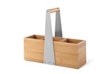 Boîte de rangement en bambou véritable, à 3 compartiments, avec poignée en inox brossé estampillée Zack.